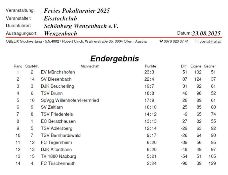 Ergebnis Pokalturnier 2025