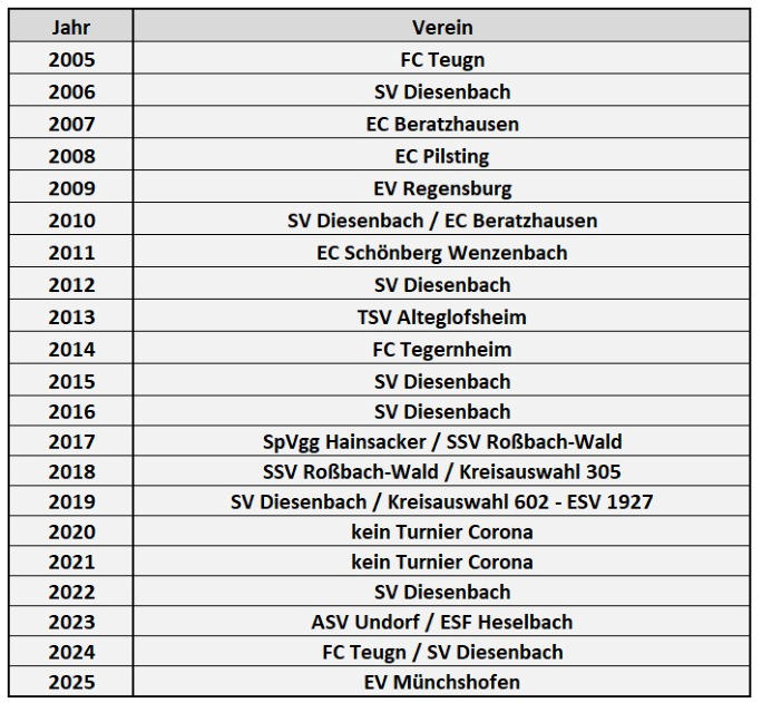 Sieger unserer Turniere in den letzten Jahren